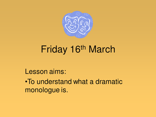 It gives the speaker a chance to get their own experience across without the thoughts or words of someone else interfering. The setting of such poems is dramatic. Are you auditioning for a comedy? Dramatic monologue is a combination of two words i.e., dramatic and monologue.the word dramatic is an adjective derived from the greek word dramatikos meaning something which pertains to drama or which is replete with action and is suitable for drama.the word monologue has been derived from a greek word monologos, which means speaking alone. Dramatic monologues are a way of expressing the views of a character and offering the audience greater insight into that character's feelings.